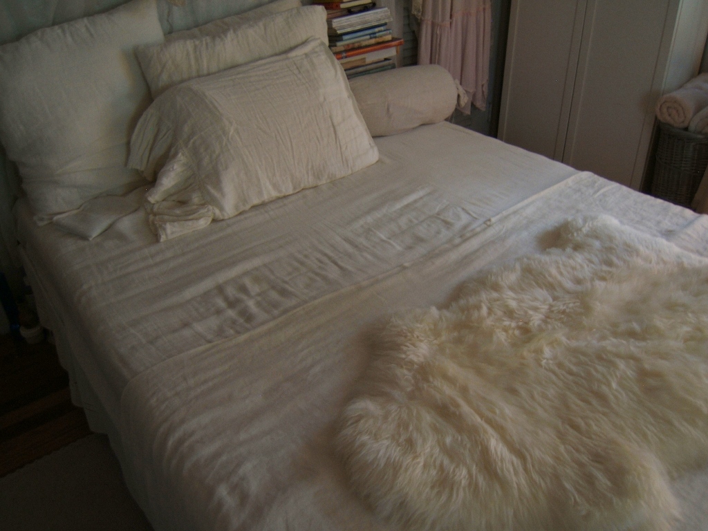 I finally was able to acquire some bedding in pure linen thanks to those eastern European farmers who grow the fabric, weave it and make bedding from it, all from a common locale.